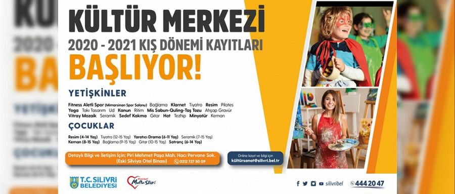 Silivri Belediyesi Kültür Merkezi’nde 2020-2021 kış dönemi kurs kayıtları başladı. Pandemi kurallarına göre planlanarak yetişkinler ve çocuklar için hazırlanan kurslara kayıt olmak isteyenler online olarak da kayıt yaptırabilecekler.