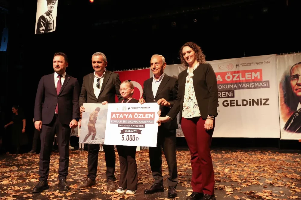 Ödül törenine Küçükçekmece Belediye Başkanı Kemal Çebi’nin yanı sıra birim müdürleri, öğrenciler, öğretmenler ve ebeveynler katıldı. Katılımcılar, yarışmacıların okuduğu Atatürk’e özlem dolu şiirlerle duygusal anlar yaşadı. Yarışmada dereceye giren öğrencilere ve öğretmenlere ödülleri Belediye Başkanı Kemal Çebi tarafından takdim edildi. Çebi, yarışmaya katılan gençleri ve öğretmenleri tebrik ederek, Atatürk sevgisini derin mısralarla ifade eden katılımcılarla gurur duyduğunu belirtti. Başkan Çebi, “Cumhuriyetimizi emanet ettiğimiz genç neslin her birinin Atamızın izinde, aydınlık bir geleceğin teminatı olduğuna inanıyorum,” dedi.