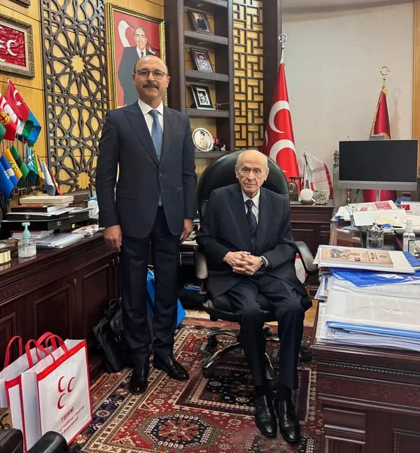 HABER / NEZİR KARAYÜN / ADOM AJANS - Türk Eğitim-Sen Genel Başkanı Talip Geylan, Milliyetçi Hareket Partisi Genel Başkanı Sayın Devlet Bahçeli’yi makamında ziyaret etti. Ziyarette Sayın Bahçeli’ye geçmiş olsun dileklerini ileten Talip Geylan, kendisine sağlık ve afiyet temennilerini sundu.