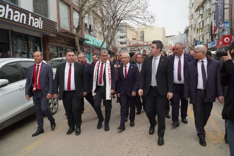 konuşmasına şu ifadelerle devam etti: “Arkadaşlar bir yerel seçim süreci yaşıyoruz diyebilirsiniz ki, ‘niye bunları anlatıyorsun?’, ‘Sen yalnızca belediyeden bahset belediye başkanından meclis üyelerinden bahset.’ Keşke mesele bu kadar basit olsaydı mesele bu kadar basit değil. Hatırlayın, unutmayın bizim kurucularımıza ‘iki ayyaş’ diyenleri unutmayın! Şimdi önümüze sandık geliyor bu sandığa oy vermeye giderken aklımızda kalanları hatırlatıyorum size bunlar aklımızda olmalı ki o sandıkları patlatmalıyız! Kaç tane emekli arkadaşımız var burada emekliler birer el kaldırabilirler mi? Bu memlekette 16 milyon emekli var ve 16 milyon emeklinin maaşını 7.500 TL'den 10.000 TL'ye çıkarttı diye arkadaş çok büyük iflas etmiş. Ben şimdi soruyorum size 10 bin lirayla yaşamaya mahkum muyuz? Peki bu memleketin parası mı yok? Parası var arkadaşlar. Yalnızca kur korumalı mevduatına 800 milyar TL gömdü ama 16 milyon emekliye bunun dörtte birini verebildiği için sizlere şikayetleniyor. O halde soralım. Eğer o sandık önüne geldiğinde bunu bu yoksulluk maaşına mahkum edenleri hatırlamadan o imzayı oy atıyorsak hepimize yazıklar olsun!”