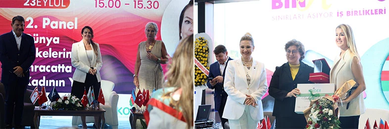 KOİDER Bazaar etkinliğinin ikinci gününde “Dünya Ülkelerinde İhracatta Kadının Yeri” adlı panelin ilk konuşmacısı Akyürek Makine A.Ş Yönetim Kurulu Üyesi Gül Akyürek Balta oldu. Balta, kadın sanayici sayısını artırmaya yönelik yaptıkları çalışmalardan bahsetti. Balta, “Öncelikli misyonumuz kadın sanayici sayısını artırmak. Çukurova ülkemizin en önemli tarım bölgesi. Biz de gıda ürünleri üreten bir sanayi bölgesiyiz. Bölgemizdeki birçok girişimci kadını tarımın sanayileşmesi noktasında ve kadının sanayide yer alması için teşvik ettik. Bir girişimcilik hikayesi başlattık” dedi. Bir diğer konuşmacı Leyla Alaton ise kadınların belli bir yere gelene kadar destek görmesi gerektiğini dile getirdi. Kadınlara olan desteğin az olduğunu aktaran Alaton, “Kadın rol model çok az. Kadın rol model sayısı artmalı. Rol model çok olursa genç nesil de etkilenir. Başarmak için ilham almak çok önemli. Aynı paraya sahip değiliz ama aynı vakte sahibiz. Bu yüzden zamanınızı iyi kullanın. Konfor alanınızdan çıkın ve harekete geçin. O zaman her şey size çok kolay gelecek” ifadelerini kullandı. Panelin sonunda panelistlere plaket takdimi yapıldı.