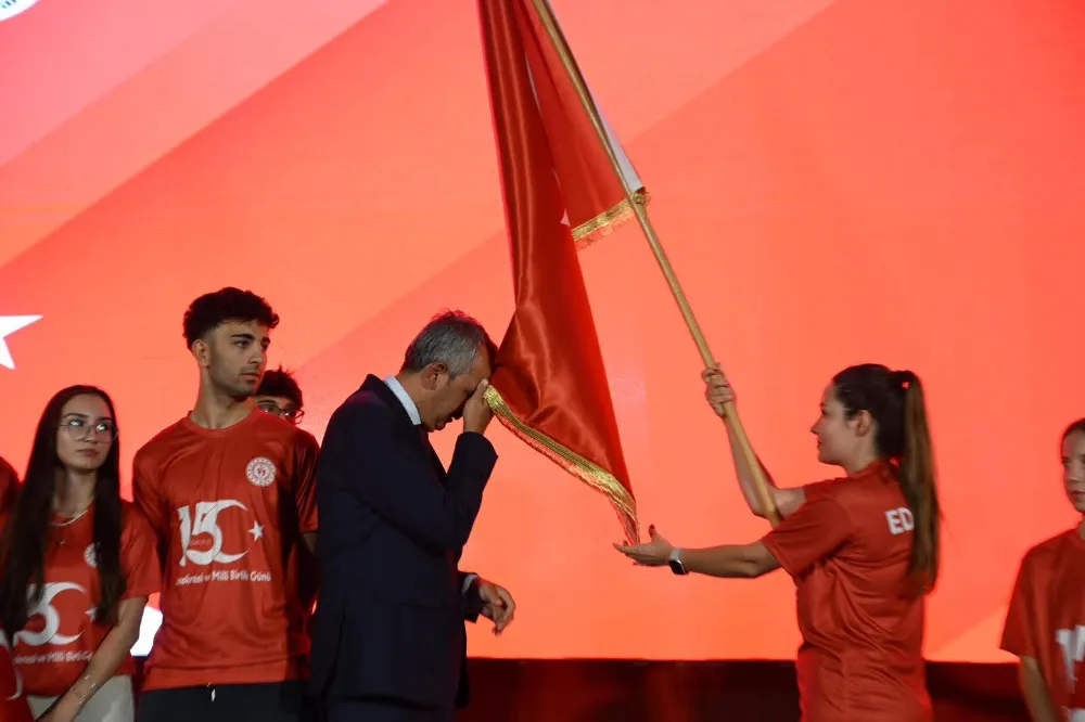 Vali Sezer, konuşmasının sonunda 15 Temmuz şehitleri başta olmak üzere tüm şehitlere rahmet diledi, Gazi Mustafa Kemal Atatürk ve vatana hizmet etmiş tüm gazilere minnet ve şükranlarını sundu. Ahirete irtihal eden gazilere de rahmet diledikten sonra konuşmasını "Vatanları cennet olsun, ruhları şad olsun." sözleriyle tamamladı. Konuşmaların ardından Vali Yunus Sezer, milli birlik ve beraberliğimizin simgesi, gururumuz Şanlı Bayrağımızı öperek teslim aldı.