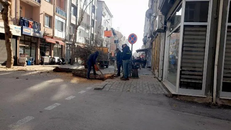 HABER / GÜLSEVİN KUZU / EDİRNE - Edirne merkezdeki Uzunkaldırım Caddesi üzerinde, Edirne Belediyesi Park ve Bahçeler Müdürlüğü ekipleri tarafından kapsamlı bir ağaç bakım çalışması gerçekleştirildi.