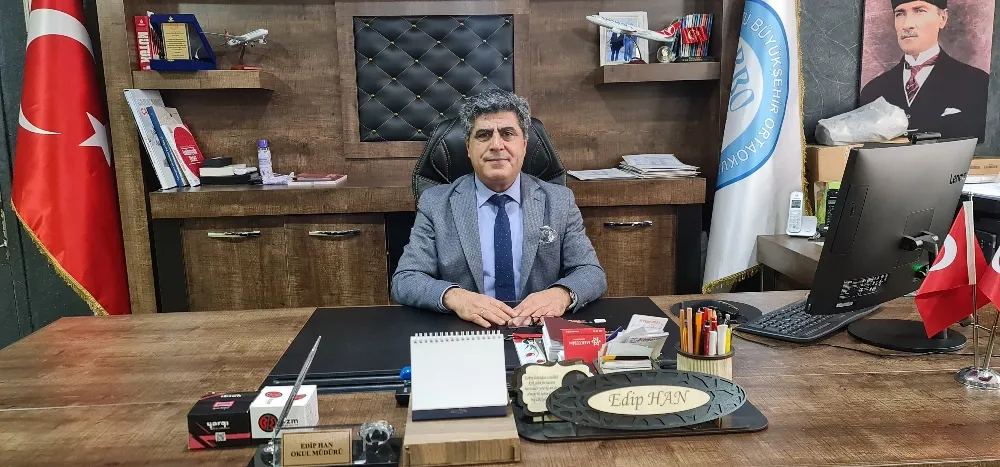Büyükşehir Yücel Akkaş Ortaokulu Müdürü Edip Han, Kıymetli velilerim değerli meslektaşlarım ve yarınlarımızın teminatı sevgili gençlerimiz. Manevi huzurla dolu bir Ramazan ayını geride bırakırken birliğimizin ve kardeşliğimizin en güzel ifadesi olan bayrama erişmenin sevincini paylaşıyoruz. Bayramlar milli ve manevi değerlerimizin harmanlandığı sevginin paylaşıldıkça çoğaldığı en anlamlı günlerimizdir. Eğitim camiası olarak bizler evlatlarımızı sadece ilimle değil bu köklü geleneklerin bilinci ve yardımlaşma ruhuyla yetiştirerek yarınlara hazırlıyoruz.