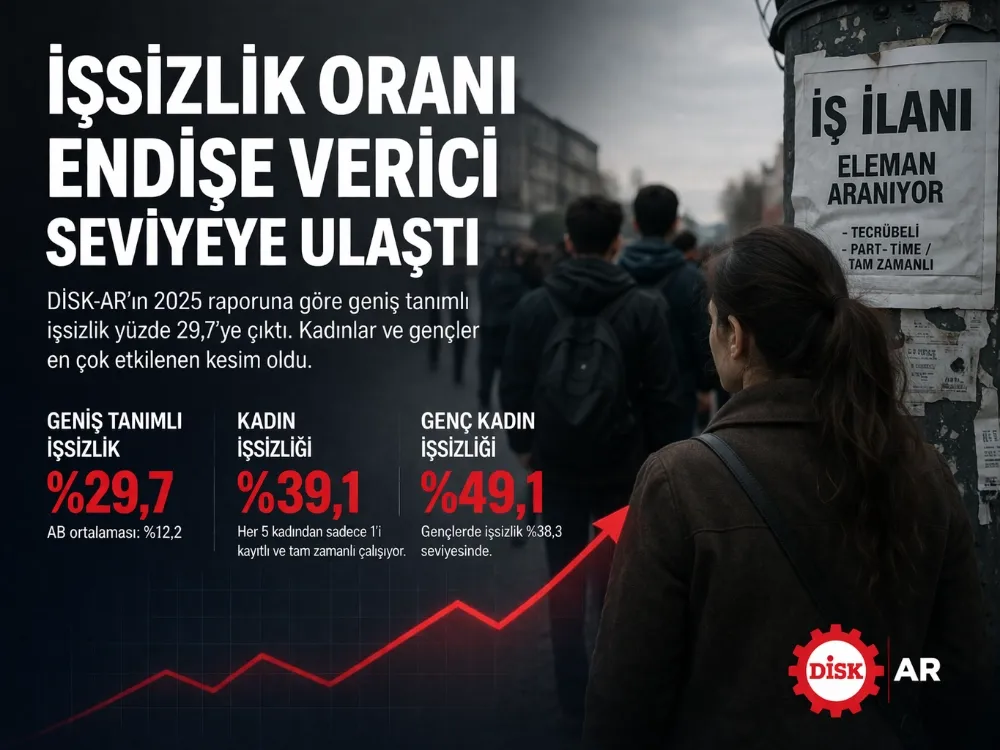 Devrimci İşçi Sendikaları Konfederasyonu Araştırma Merkezi tarafından açıklanan 2025 yılı İşsizlik ve İstihdamın Görünümü Raporu, Türkiye’de işsizlik tablosunun giderek ağırlaştığını ortaya koydu. DİSK-AR yetkilileri, “Rakamlar bize açıkça şunu söylüyor; Türkiye’de geniş tanımlı işsizlik artık görmezden gelinecek bir seviyede değil” diyerek dikkat çekici verileri kamuoyuyla paylaştı.