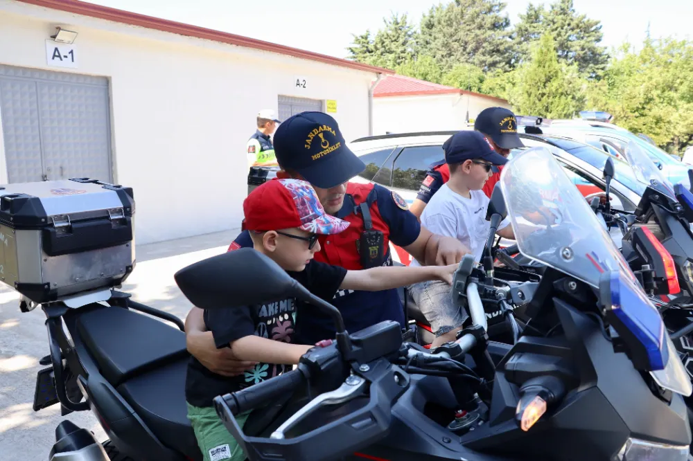 Kışla içerisinde özel olarak hazırlanan alanda, Jandarma envanterinde yer alan Trafik Jandarması araçları, Asayiş araçları ve motosikletleri öğrencilere tanıtıldı. Ardından, öğrencilerin ve öğretmenlerin büyük ilgisini çeken Jandarma Köpek Timlerinin gösteri faaliyeti düzenlendi. Köpek eğitim alanında gerçekleştirilen bu gösteriyle minikler keyifli vakit geçirdi.